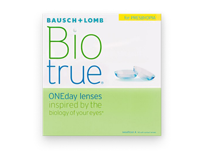 Bausch and Lomb Biotrue ONEday for Presbyopia provides clear, comfortable vision up close, far away, and in between; maintaining 98% of its moisture up to 16 hours. Also protecting you against harmful UV rays - UVA/UVB, all in the convenience and comfort of a daily disposable lens.